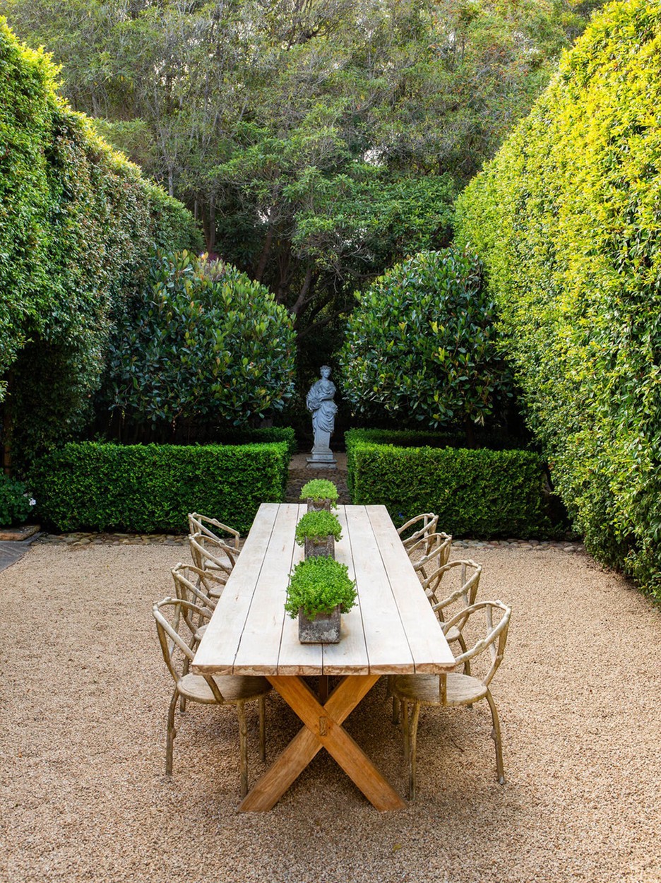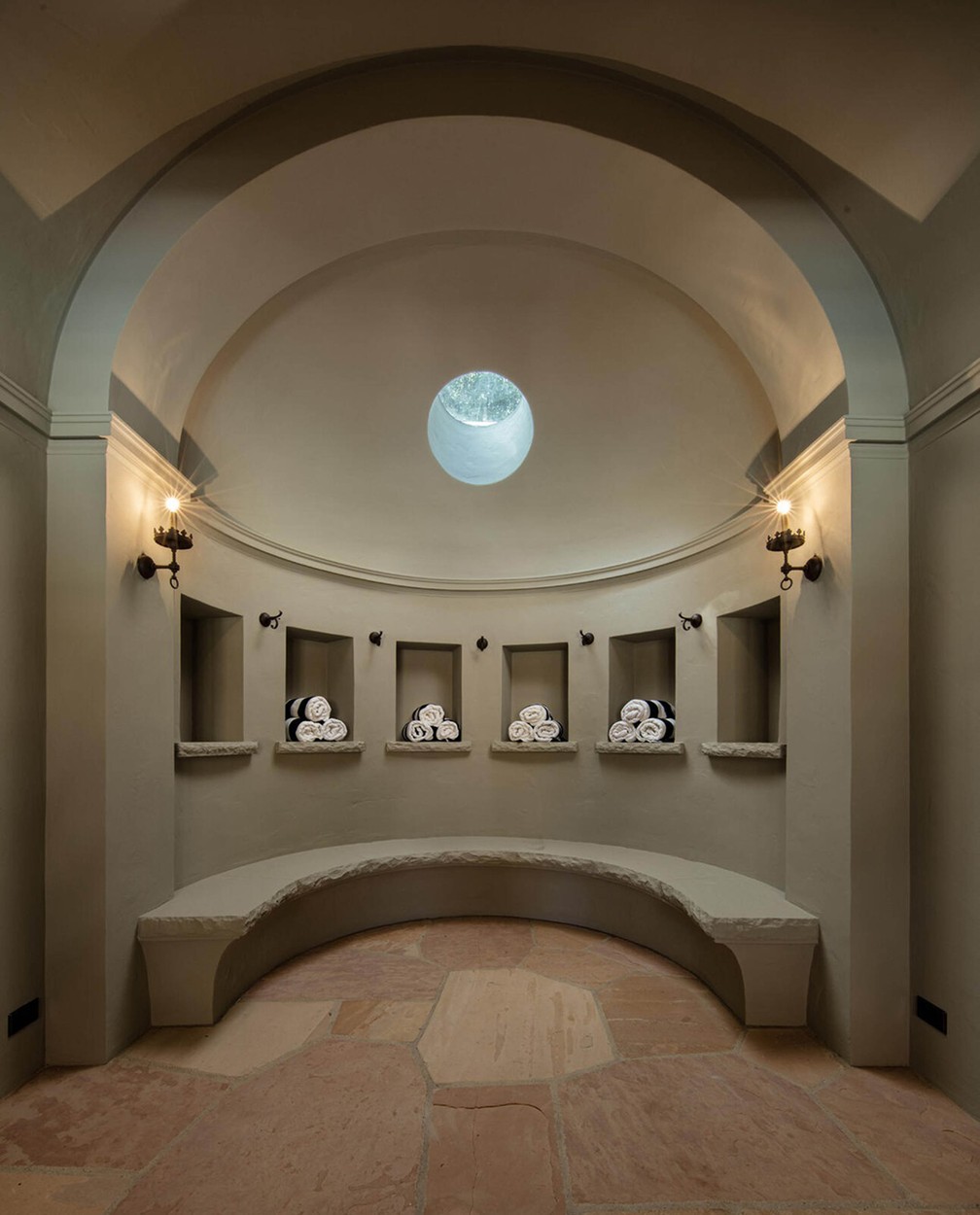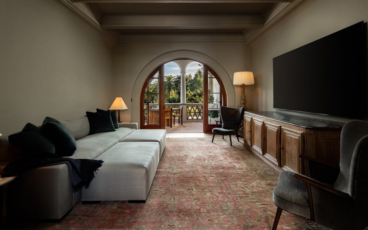 Vila je bila okoli leta 2000 popolnoma prenovljena, DeGeneresova pa jo je preoblikovala v minimalistično in pomirjujoče nevtralno zatočišče, ki uteleša trenutni trend mirnega razkošja. V nasprotju s številnimi drugimi zgodovinskimi dvorci v Montecitu je redka enonadstropna rezidenca, katere vse sobe se odpirajo na osrednje dvorišče, prepredeno z rimskimi stebri.