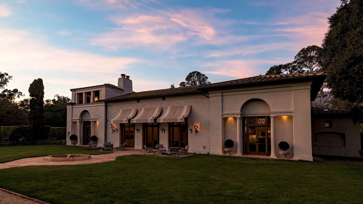 Po navedbah nepremičninske skupine Riskin Partners se ta dvorec v evropskem slogu ponaša z elementi prvotne arhitekture iz leta 1919, leta izgradnje in najvišjim nivojem luksuza. Hiša je znana pod imenom Pompeiian Court in skrita za ogromnimi železnimi vrati in četrt kilometra dolgo dovozno potjo, ki se konča na krožnem dvorišču, obdanem z oljkami.