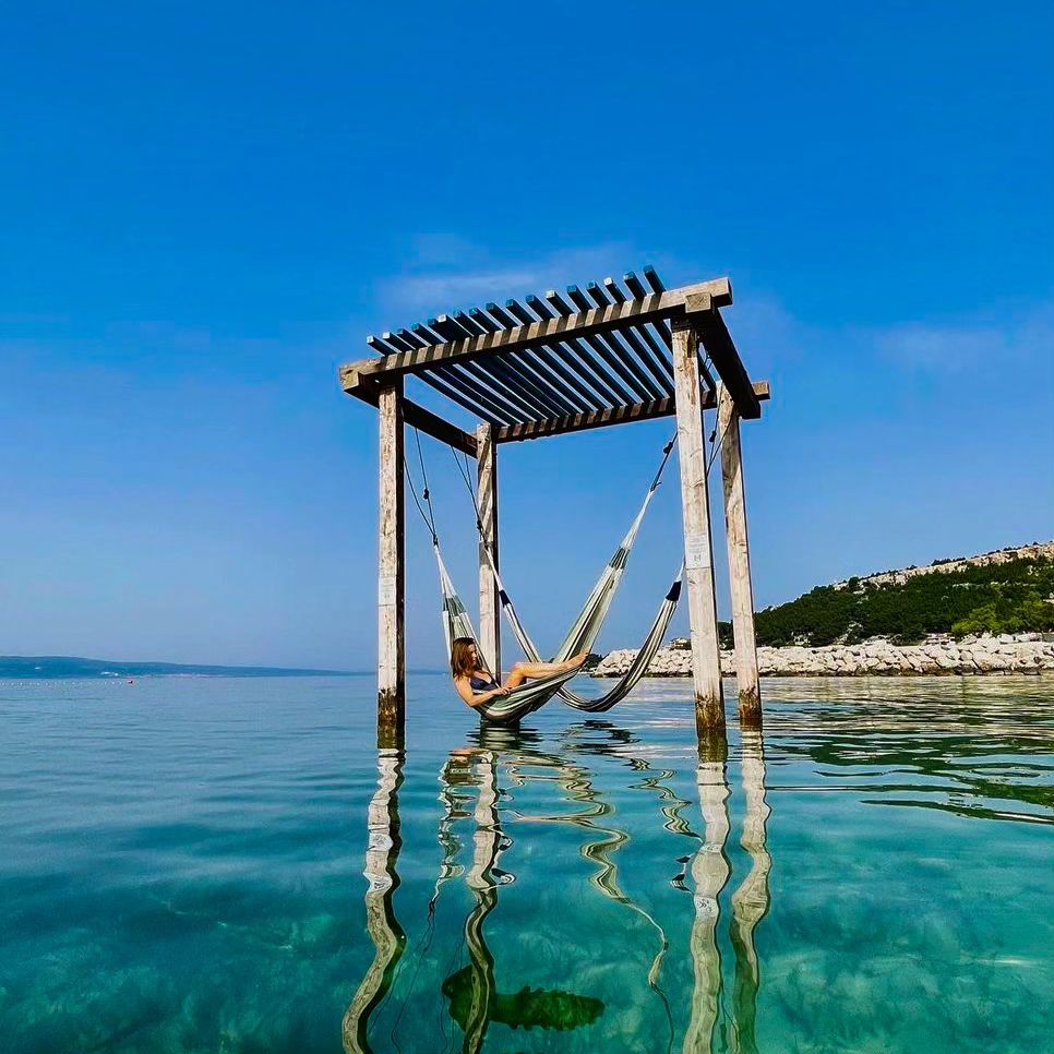 Omiška riviera je znana po čudovitih plažah, ena najlepših pa je zagotovo Duće. Hotelska plaža nima ne ponuja le gugalnice v morju, ampak tudi viseče mreže v morju, ki so milo rečeno spektakularne.