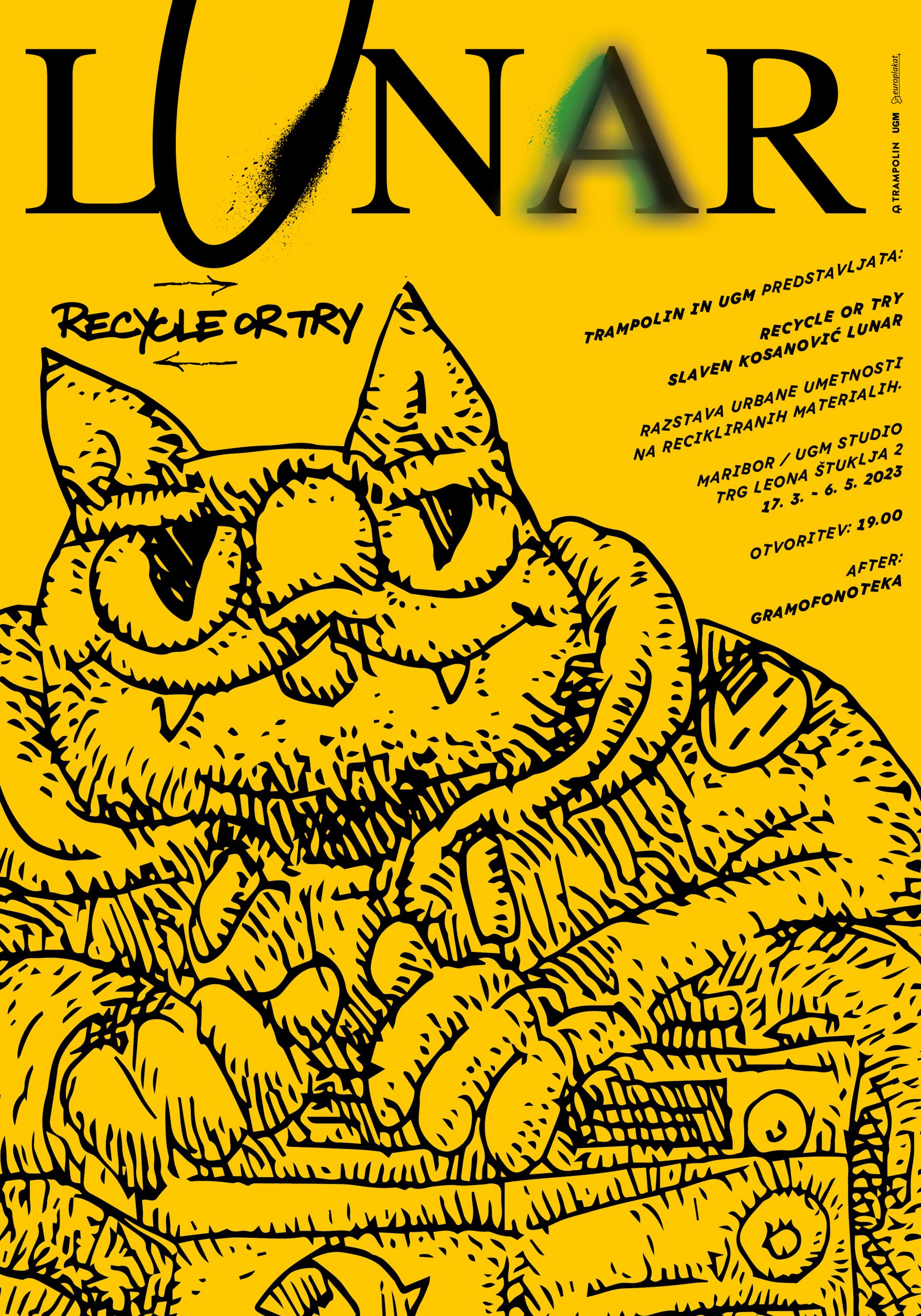 Slaven Lunar Kosanović je eden najpomembnejših hrvaških grafitarjev, ki ima dobro vzpostavljeno globalno mrežo znotraj urbanih umetniških skupnosti, ki sega v devetdeseta leta prejšnjega stoletja. Prav ta velik hrvaški umetnik bo pripravil razstavo urbane umetnosti Recycle or Try, ki predstavlja prvo večjo samostojno predstavitev Lunarja v Mariboru.