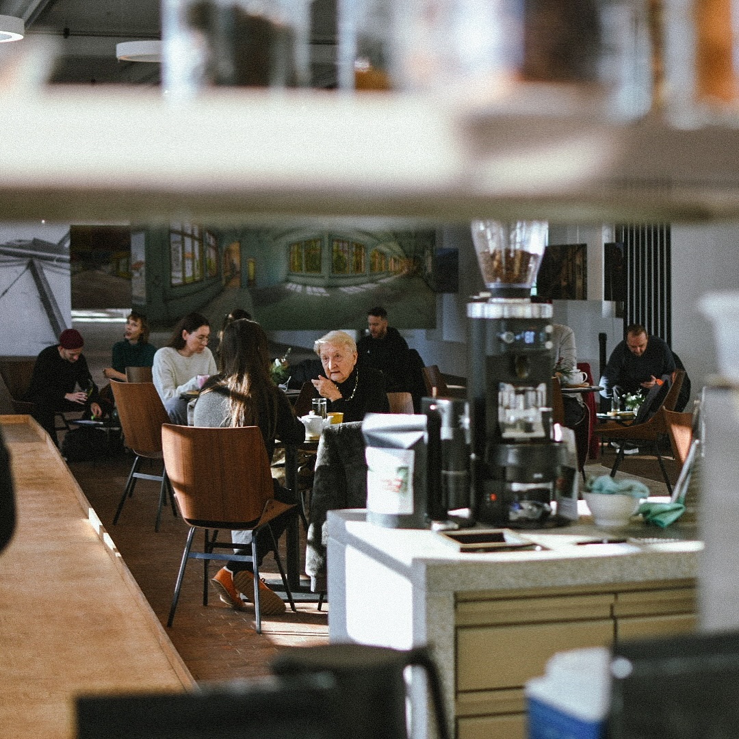 Kavarna se razprostira na prvem nadstropju, kjer je dovolj prostorna, da je v njej udobno opravljati tudi delo “od doma”, njen podaljšek na teraso pa je dodatna pika na i za polnjenje baterij in druženje.