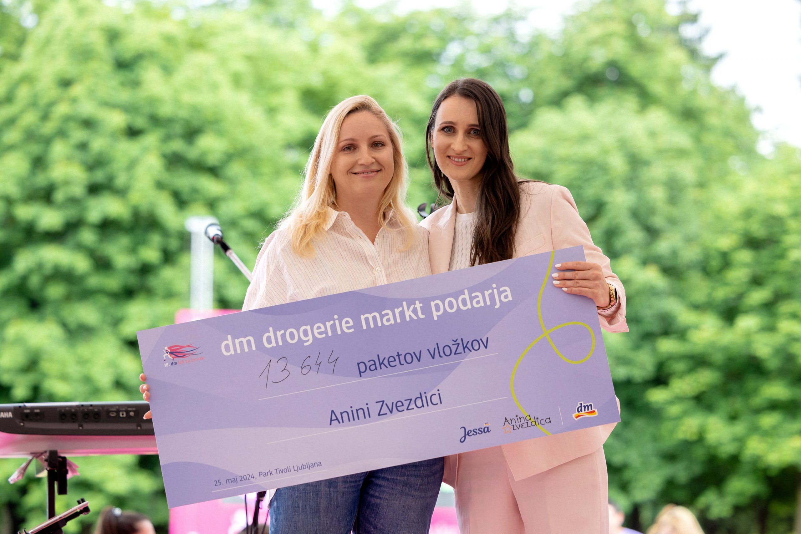dm Slovenija je tako od vsake prodane startnine doniral dva paketa vložkov Jessa organizaciji Anina zvezdica, ki bo vložke z zbranimi sredstvi razdelila ženskam, ki jih menstrualna revščina najbolj prizadene.