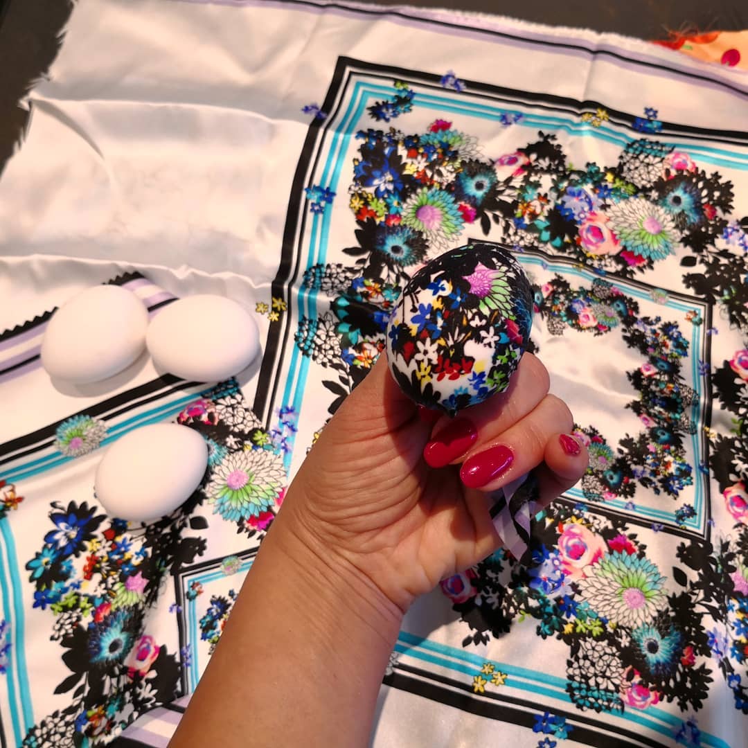 Če želite imeti na mizi pisane velikonočne pirhe s točno določenim vzorcem in barvo, morate najprej izbrati ustrezno svilo. Tkanina mora biti velikosti nekje 18×18 centimetrov, da lahko v celoti zaobjame jajce.