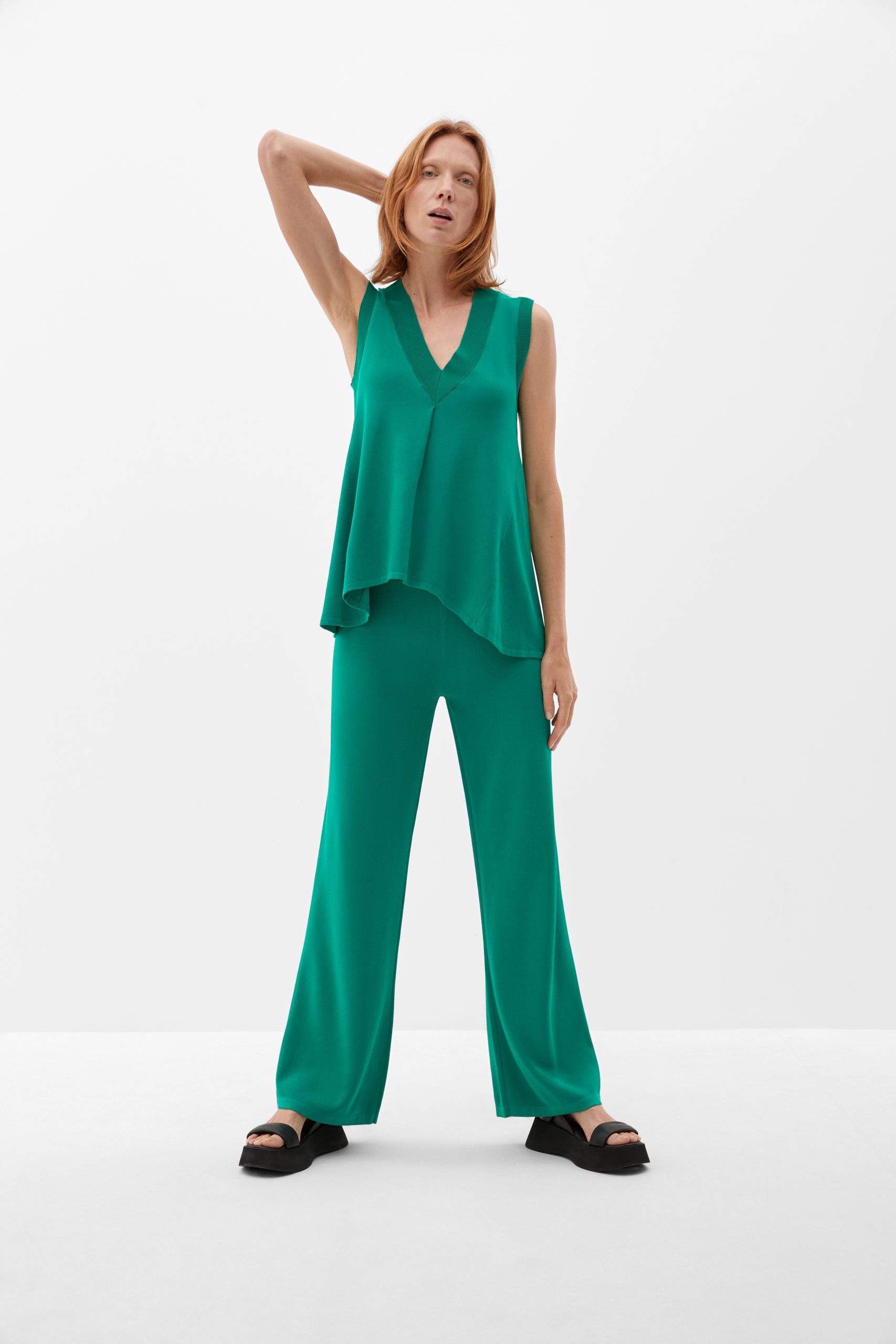 Kostime so zadnja leta zamenjali dvodelni usklajeni kompleti, ki poskrbijo za sproščeno eleganco. To leto znova osvajajo modno industrijo in (p)ostajajo pravi hit. Pravi izbor je plisiran top in široke hlače v travnato zeleni ali kobaltno modri barvi.