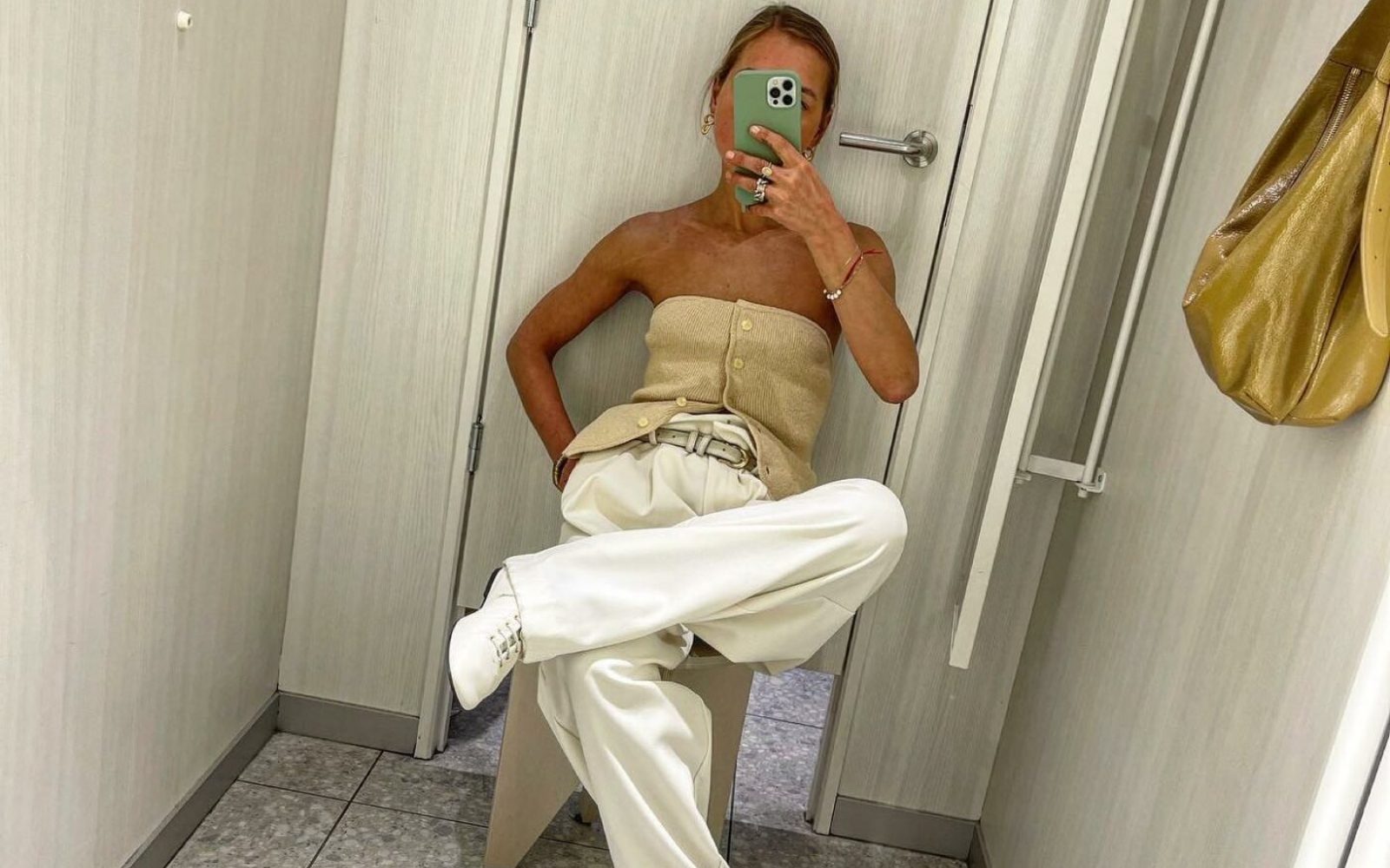 Top smo najprej opazili pri vplivnici Anni Borisovni, ki je v kombinaciji s širokimi belimi hlačami in belimi čevlji ustvarila lep spomladanski videz, rezerviran za nekoliko toplejše dni.