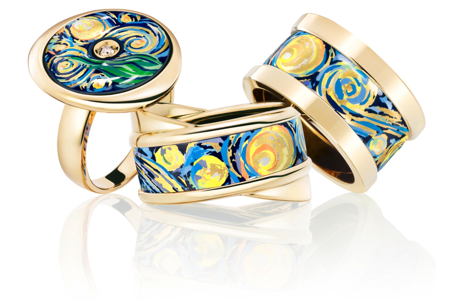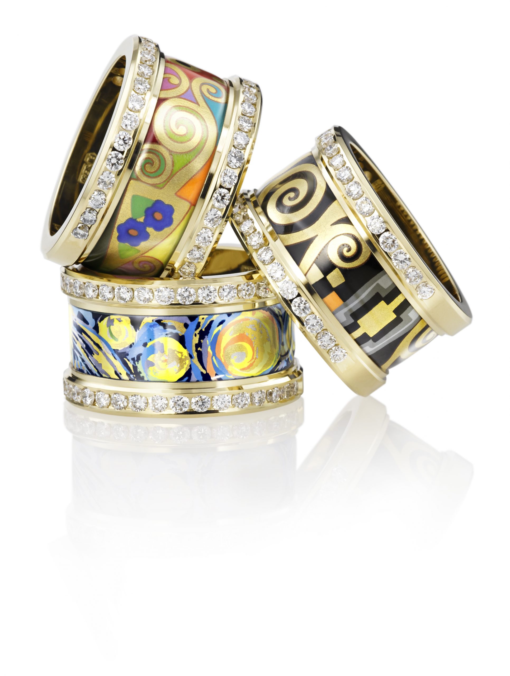 Nakit FREYWILLE in sam način izdelave sta zaščitena kot kulturna dediščina mesta Dunaj. Te majhne umetniške miniature so ročno izdelane s kompleksnim postopkom fuzije emajla z 18-karatnim zlatim prahom v dunajskem ateljeju FREYWILLE že od leta 1951. Prstani so na voljo v dveh izdajah: izdaja 18kt&diamonds, v kateri so edinstveni kosi izdelani iz čistega 18-karatnega zlata v kombinaciji z ročno poslikanim emajlom, ter edicija prstanov Dreams of The Artist, iz umetniško poslikanega emajla in 24-karatne pozlate.