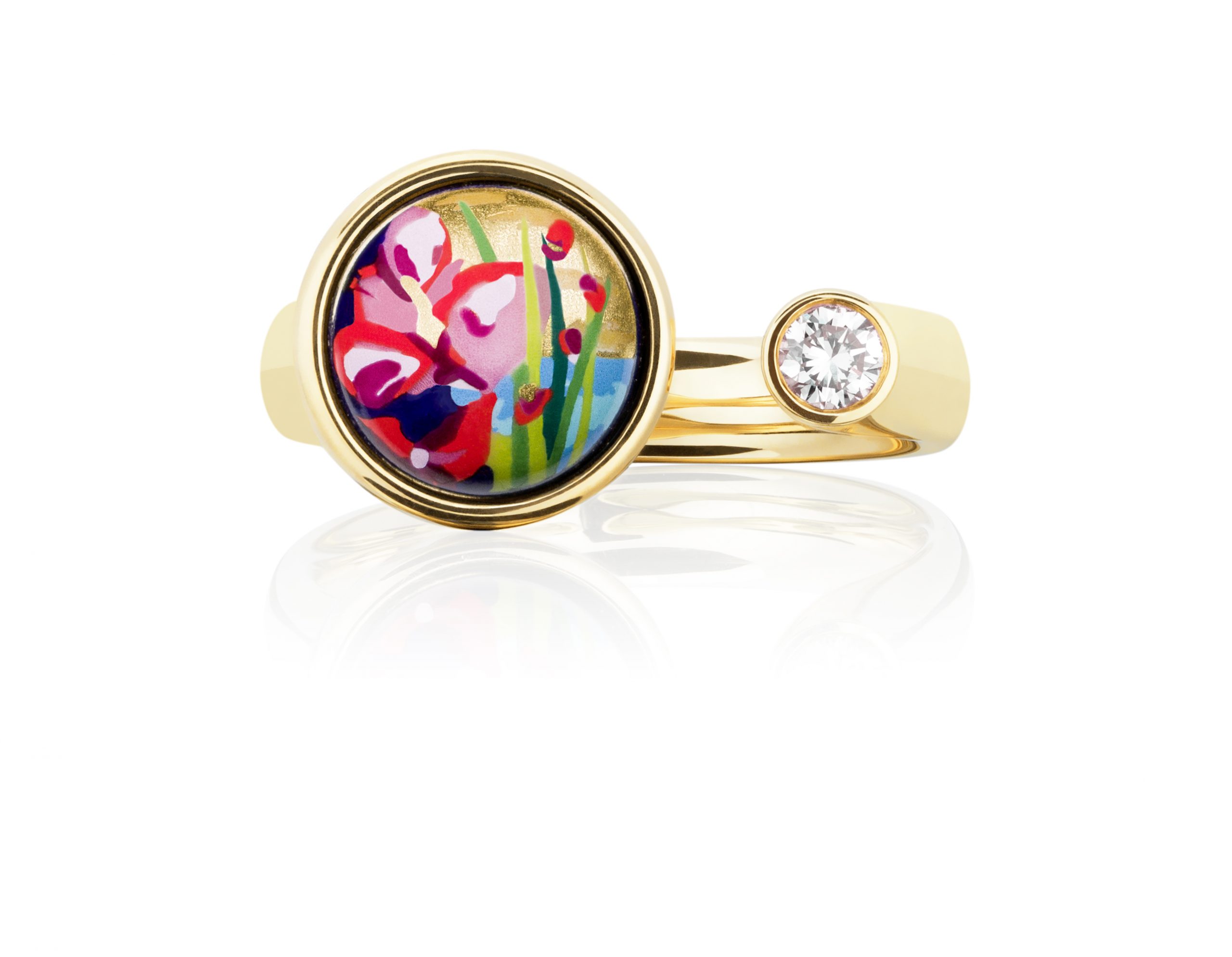 Prstan FREYWILLE Victoria iz izdaje 18kt&diamonds slavi žensko, ki si prizadeva uresničiti svoje sanje. Je sinonim za moč in eleganco, utelešeno v dragocenem umetniškem emajlu in čistem 18-karatnem zlatu. Navdušuje s preprostostjo in čistostjo dizajna, ki je še posebej inovativen, saj poudari lepoto vsakega prsta. Prstan Victoria je na zgornji strani odprt, zato vizualno podaljša prst, zato je izjemno udoben za nošenje. Plemeniti zlat okvir dobesedno lebdi okoli prsta, pogled pa ustavi skrivnostna in nevidna povezava dveh okrasnih elementov: sijočega diamanta in dragocene poslikave na čudovitem emajlu z najlepšimi umetniškimi motivi.