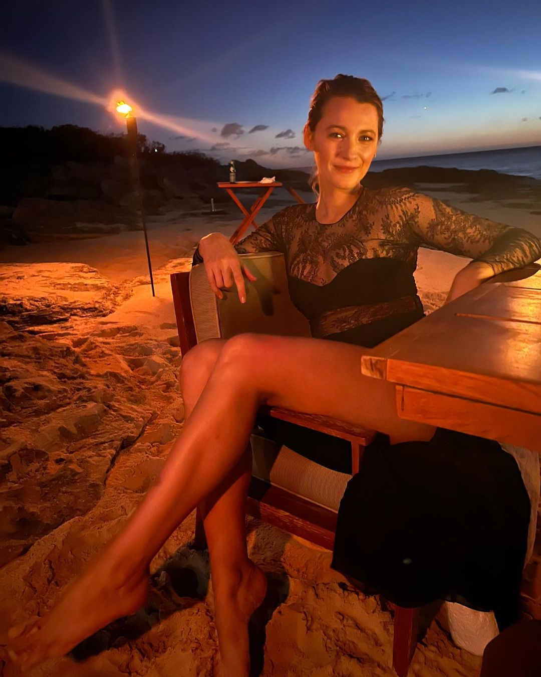 Objava je vključevala še več čudovitih selfijev para in slik Blake same. Na eni od fotografij je oblečena v prosojno čipkasto mini obleko s črnim zgornjim delom; videti je, da je bila fotografija posneta na romantičnem zmenku na plaži. Reynolds je dodal: “Biti priča njenemu življenju je nekaj, kar ne bi mogel jemati za samoumevno, tudi če bi poskusil. In verjemi mi, trudim se. Vse najboljše @blakelively.”